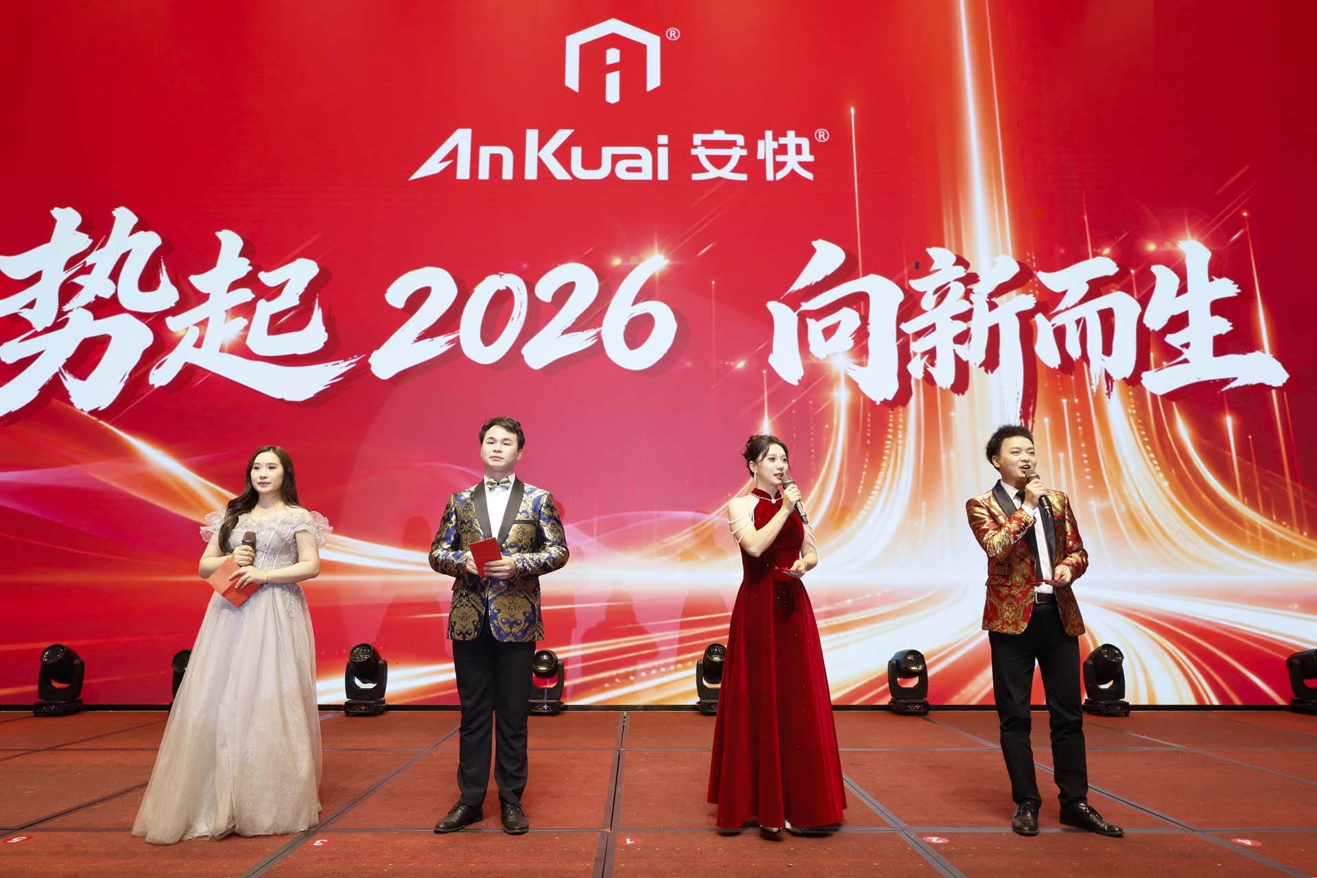 1月29日,鳳崗豐璟酒店一樓宴會廳,安快全體員工歡聚一堂。以 “勢起 2026?向新而生” 為主題的迎新春晚會,在歡聲笑語中拉開帷幕!