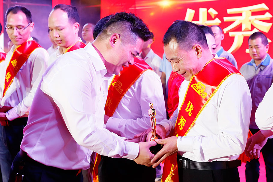 表彰優(yōu)秀,鼓勵(lì)先進(jìn),中場(chǎng)頒獎(jiǎng)典禮開始。肖董、陳總分別為年度“優(yōu)秀員工”頒發(fā)個(gè)人榮譽(yù)獎(jiǎng)杯和現(xiàn)金大紅包,充分肯定了他們?cè)诠ぷ髦械呐统煽儭?
