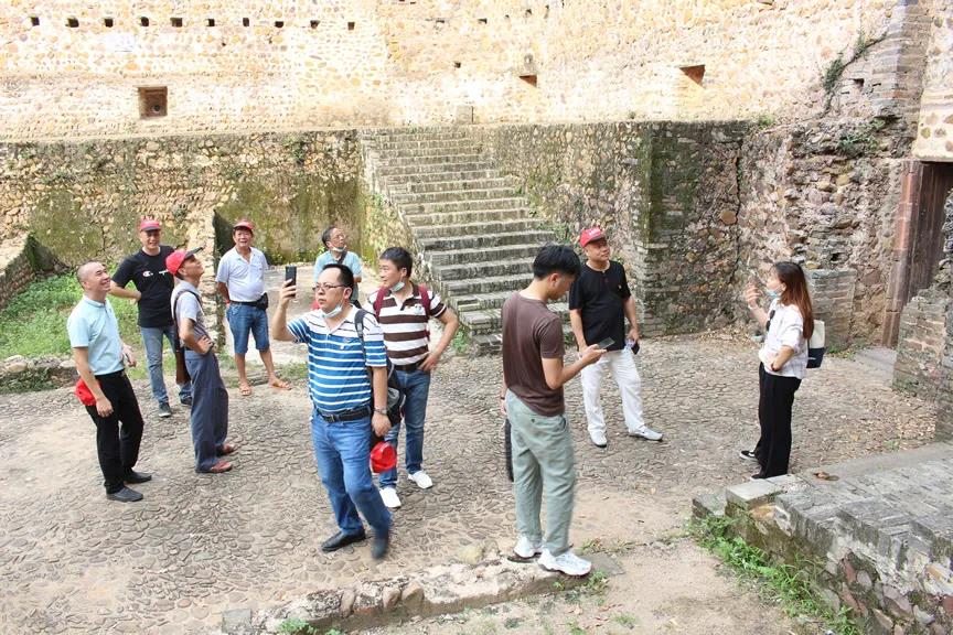隨后參觀了紅圍,紅圍原叫“奠安圍”,建于清道光年間。整座圍樓用鵝卵石、糯米、紅砂巖的砂漿砌成,圍樓沒(méi)有頂,四面墻壁圍合,其上分布著窗戶和瞭望口,整體呈淡紅色,因此被當(dāng)?shù)匕傩辗Q為“紅圍”。1940年春至1941年春,這里曾作為廣東省委、粵北省委機(jī)關(guān)舊址,在指揮廣東抗日戰(zhàn)爭(zhēng)中發(fā)揮了重要作用,是抗戰(zhàn)時(shí)期的“紅色堡壘”和重要的“紅色指揮所”。