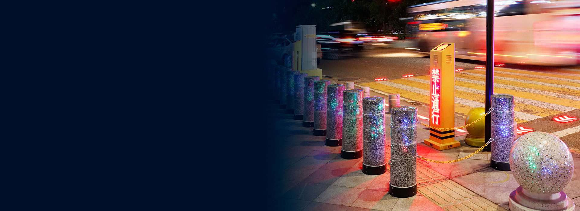 行車路口與發(fā)光障礙球、防撞柱有效結(jié)合,警示效果好,有助于行人與車輛的安全,具有獨特的亮化效果